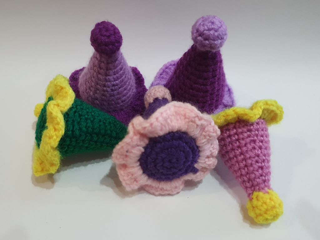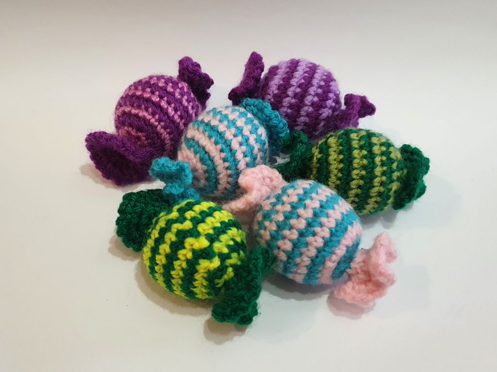 Hier finden Sie ein Beispielbild unserer Hexenhüte, Bonbons oder Bälle mit Glöckchen (mit oder ohne Baldrian).